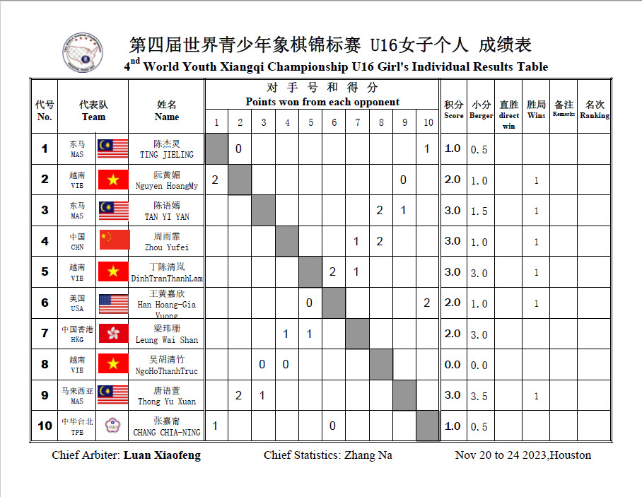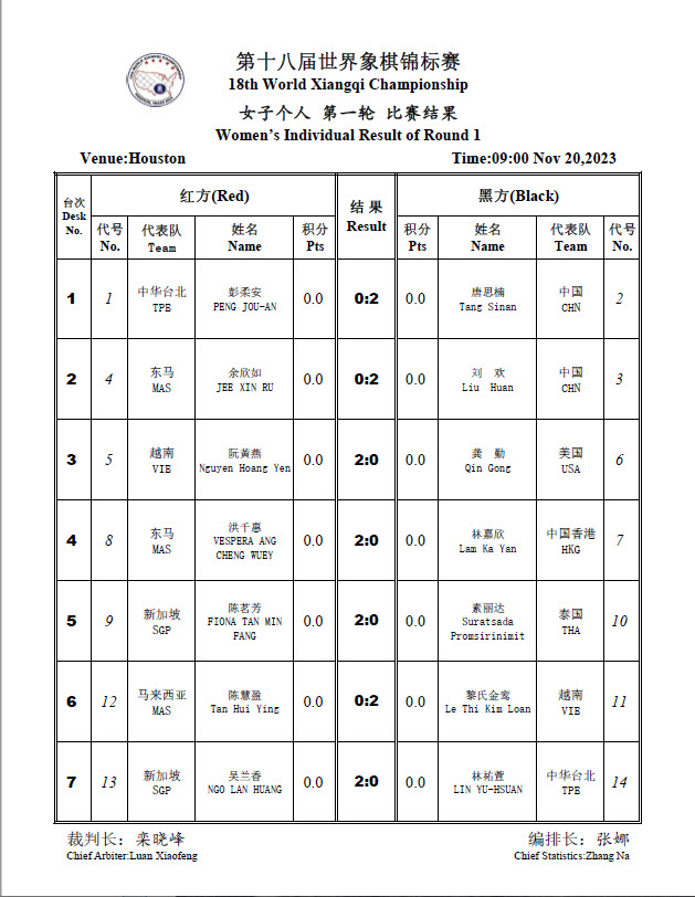 Previous article: 2023 18th World Xiangqi Championships Round 1 Results