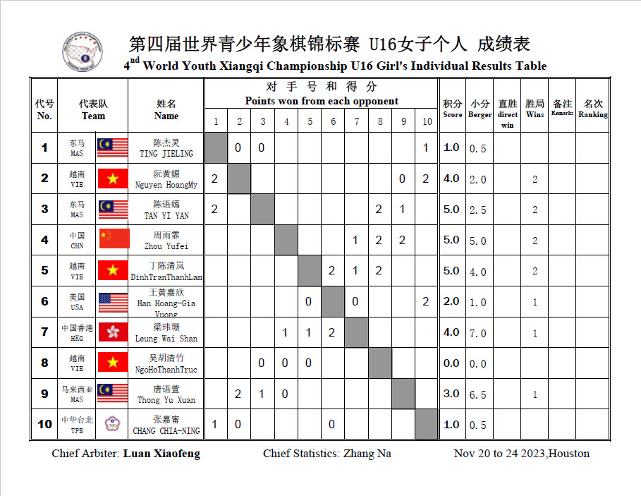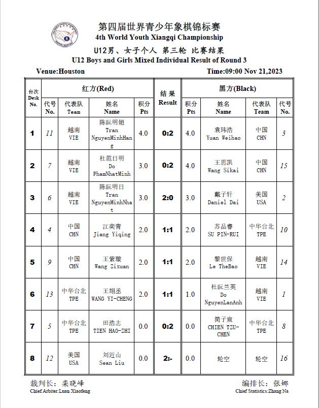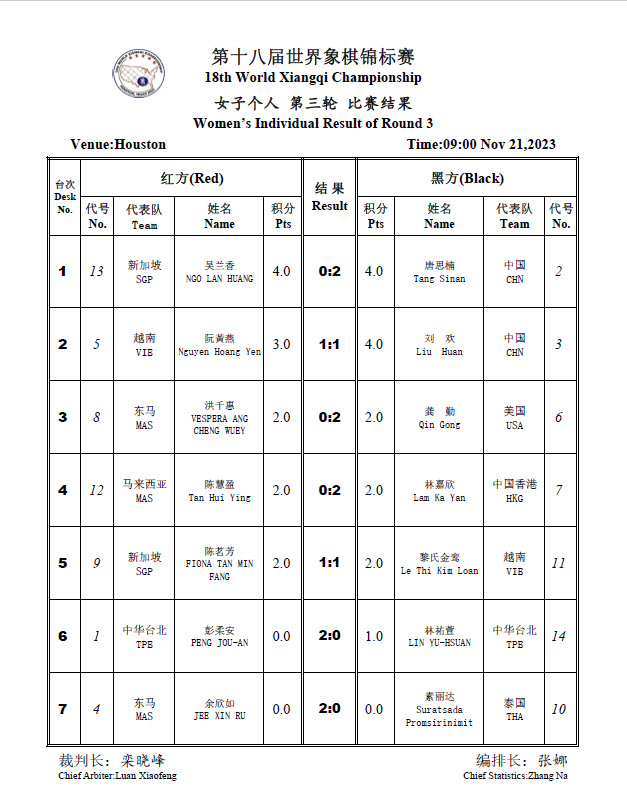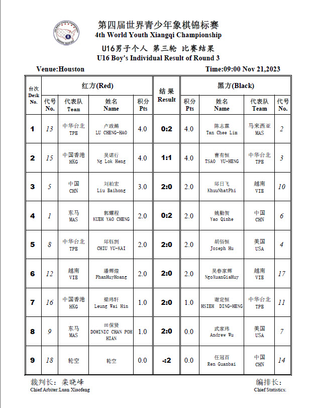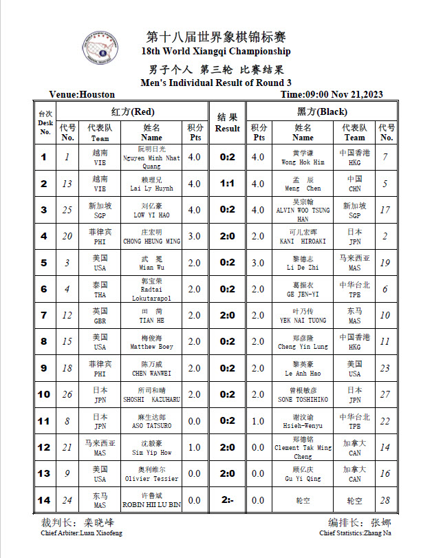 Previous article: 2023 18th World Xiangqi Championships Round 2 Results